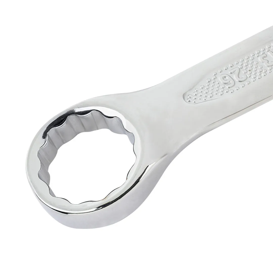 Ключи комбинированные – универсальные гаечные ключи, совмещающие в себе функционал и преимущества рожковых и накидных ключей. Зевы комбинированных ключей имеют одинаковые размеры. Ключи гаечные с открытым и кольцевым зевами предназначены для монтажа либо демонтажа резьбовых соединений. Набор изготовлен из высококачественной стали Cr-V. Ключи фиксируются на полотне, которое имеет специальные отверстия в верхних углах полотна, для фиксации его на стене. Комплектация: 6, 7, 8, 9, 10, 11, 12, 13, 14, 15, 16, 17, 18, 19, 20, 21, 22, 23, 24, 25, 27, 28, 30, 32 мм. Также в комплекте ключи комбинированные трещоточные: 10, 13 мм.Преимущества работы с нами