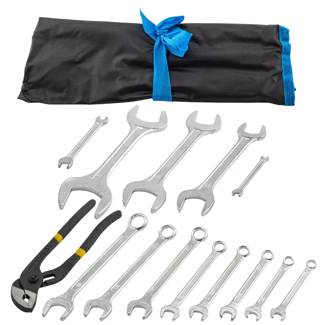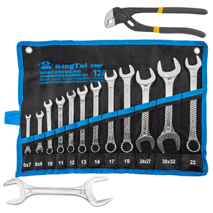 Набор комбинированных 10-22 мм и рожковых ключей 6х7, 8х9, 24х27, 30х32, 36х41 мм, пассатижи, 14 пр KINGTUL KT-5198P+2