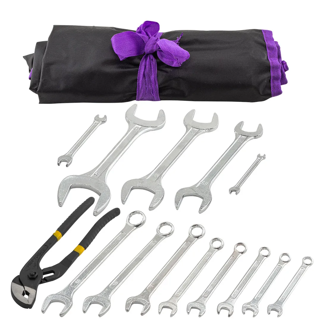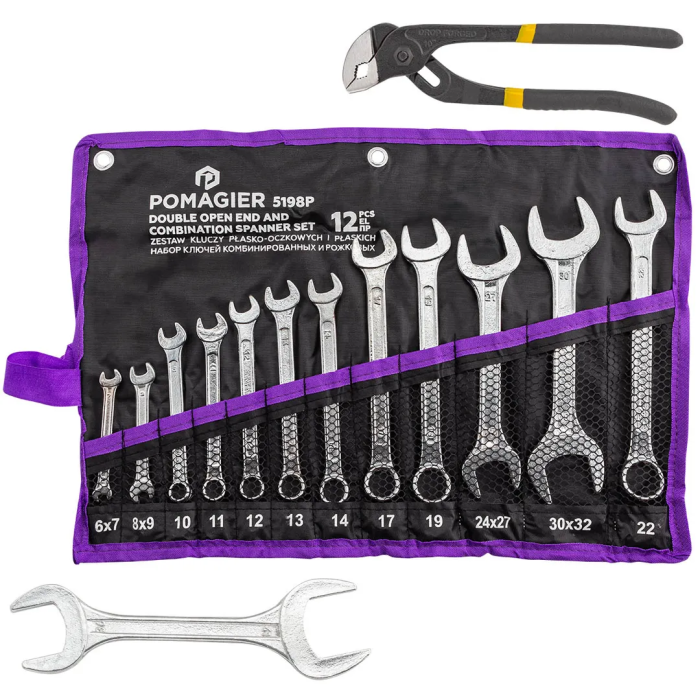 Набор комбинированных 10-22 мм и рожковых ключей 6х7, 8х9, 24х27, 30х32, 36х41 мм, пассатижи, 14 пр POMAGIER POM-5198P+2