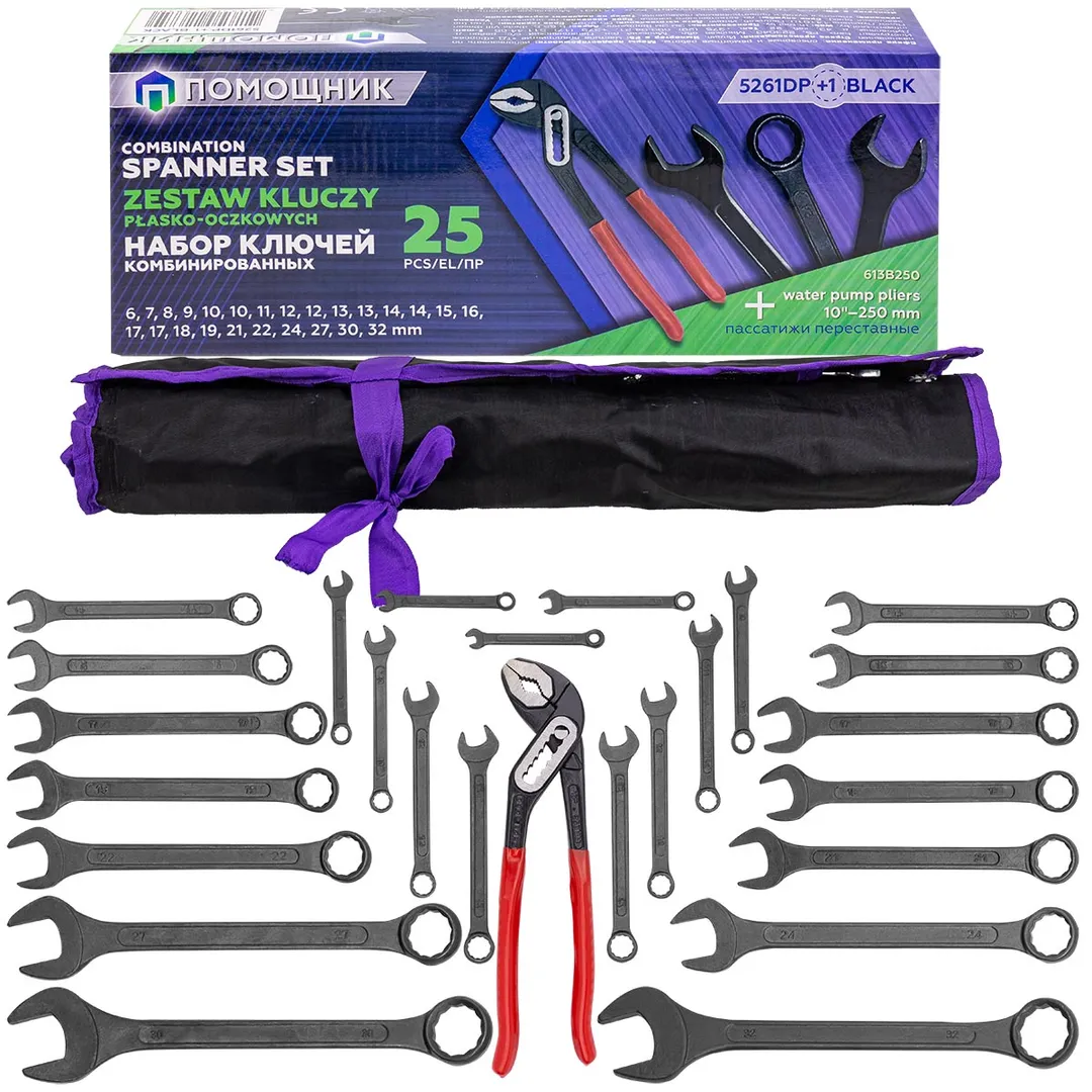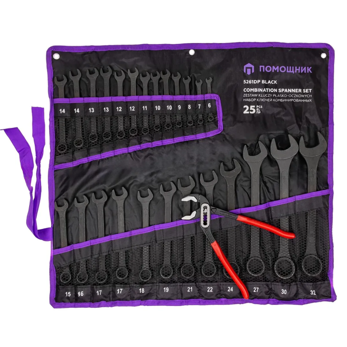 Набор комбинированных ключей 6-32 мм, пассатижи 250 мм, 26 пр Помощник 5261DP+1 BLACK