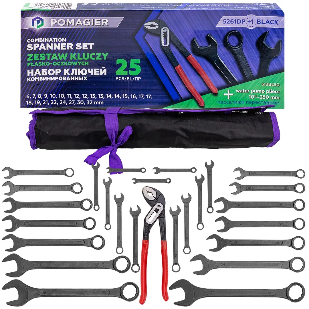 Набор комбинированных ключей 6-32 мм, пассатижи 250 мм, 26 пр POMAGIER POM-5261DP+1 BLACK