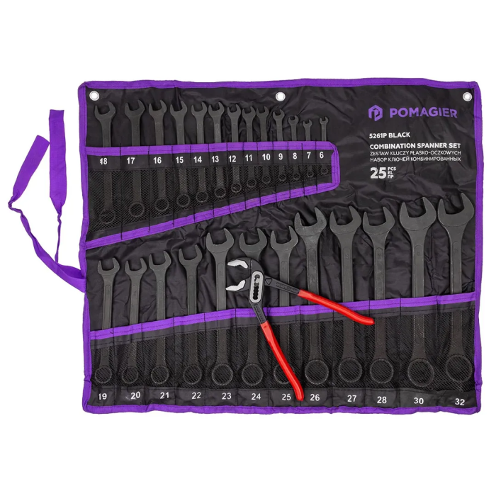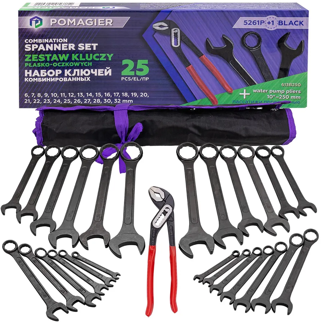 Набор комбинированных ключей 6-32 мм, пассатижи 250 мм, 26 пр POMAGIER POM-5261P+1 BLACK