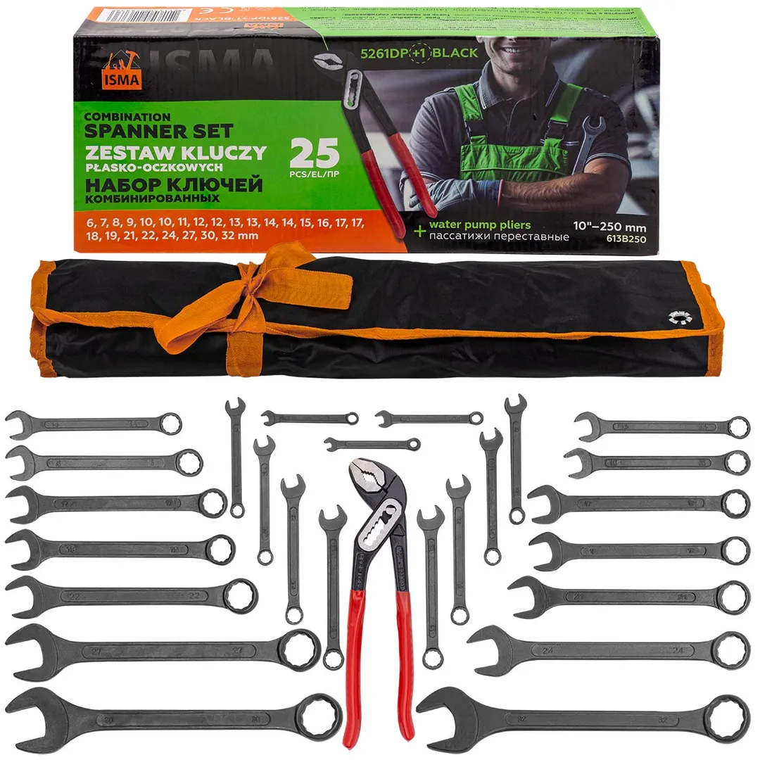 Набор комбинированных ключей 6-32 мм, пассатижи 250 мм, 26 пр ISMA ISMA-5261DP+1 BLACK
