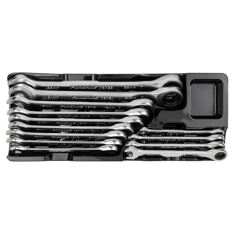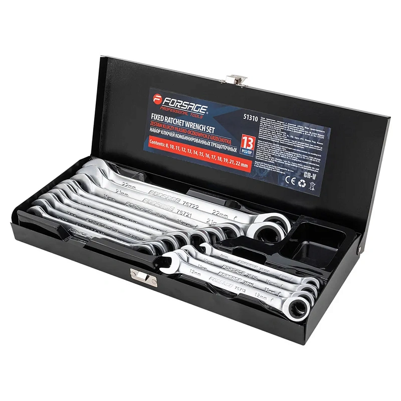 Набор ключей комбинированных трещоточных 8, 10-19, 21, 22 мм 13 пр Forsage F-51310
