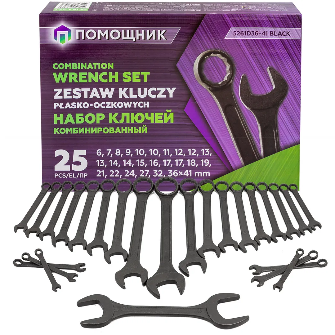 Набор ключей комбинированный 6-32 мм 25 пр Помощник 5261D36-41 BLACK