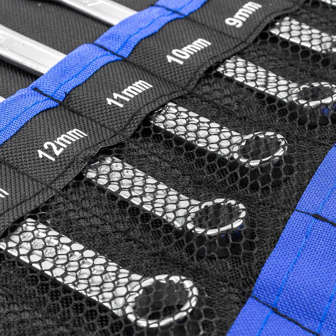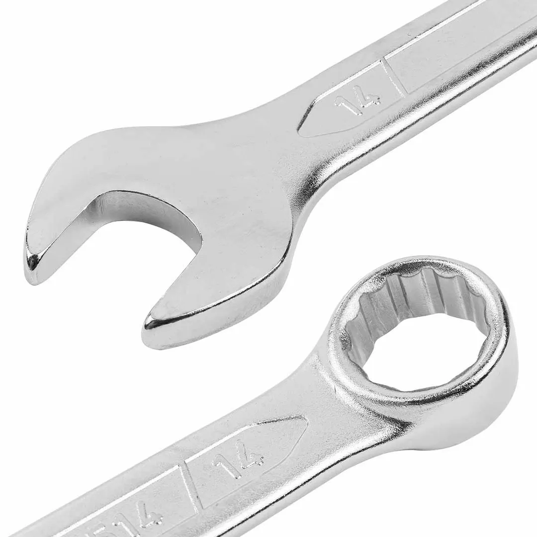 Ключи комбинированные – универсальные гаечные ключи, совмещающие в себе функционал и преимущества рожковых и накидных ключей. Зевы комбинированных ключей имеют одинаковые размеры. Ключи гаечные с открытым и кольцевым зевами предназначены для монтажа либо демонтажа резьбовых соединений. Набор изготовлен из высококачественной стали Cr-V. Ключи фиксируются на полотне, которое имеет специальные отверстия в верхних углах полотна, для фиксации его на стене. Комплектация: 8, 9, 10, 11, 12, 13, 14, 15, 16, 17, 18, 19, 21, 22, 24, 27, 30, 32 мм.Преимущества работы с нами