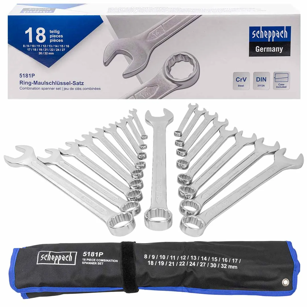 Набор комбинированных ключей 18 пр. 8-19, 21, 22, 24, 27, 30, 32 мм Scheppach Sch-5181P