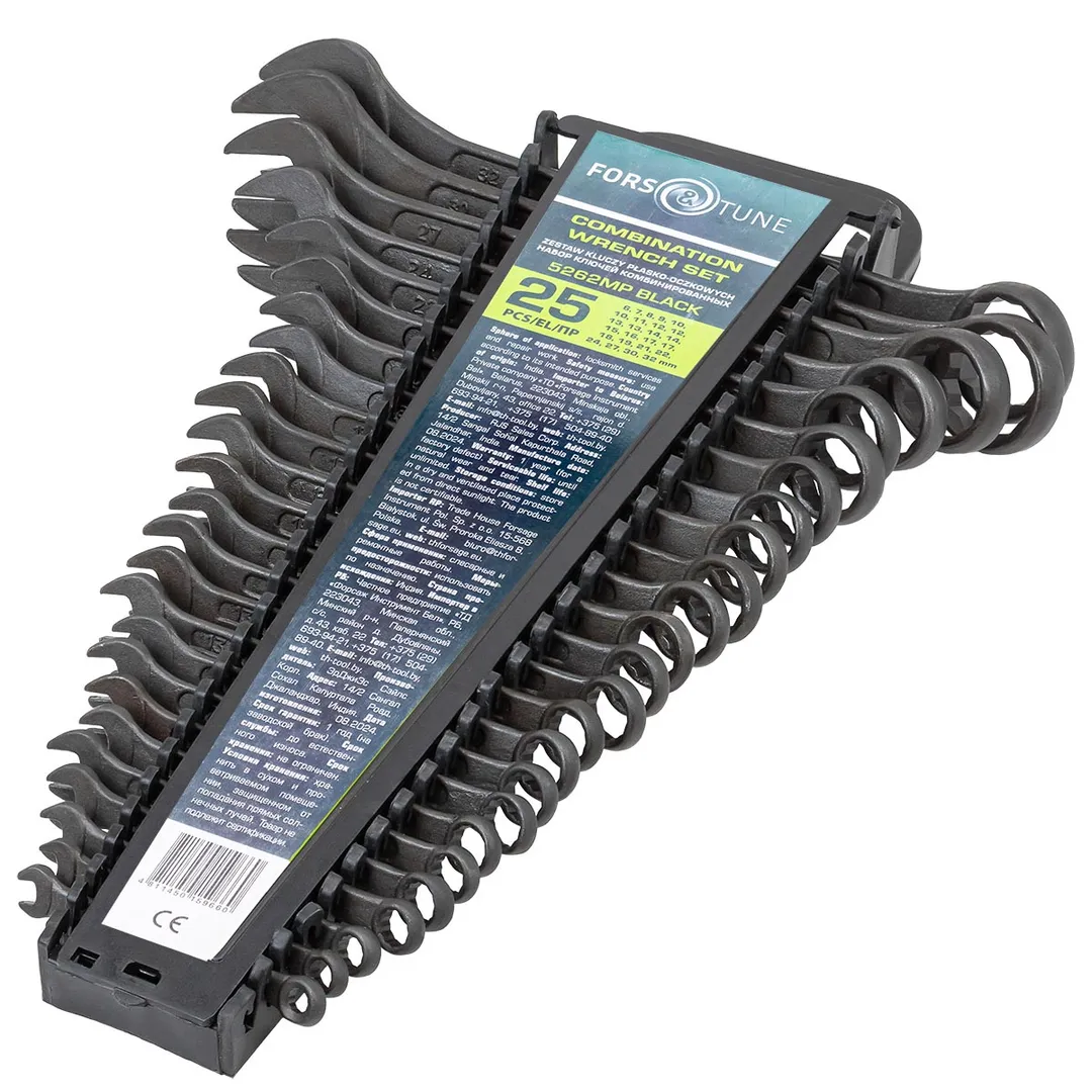 Набор комбинированных ключей 25 пр, 6-19, 21, 22, 24, 27, 30, 32 мм FORSandTUNE FORSandTUNE-5262MP BLACK