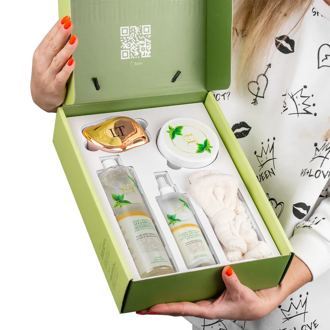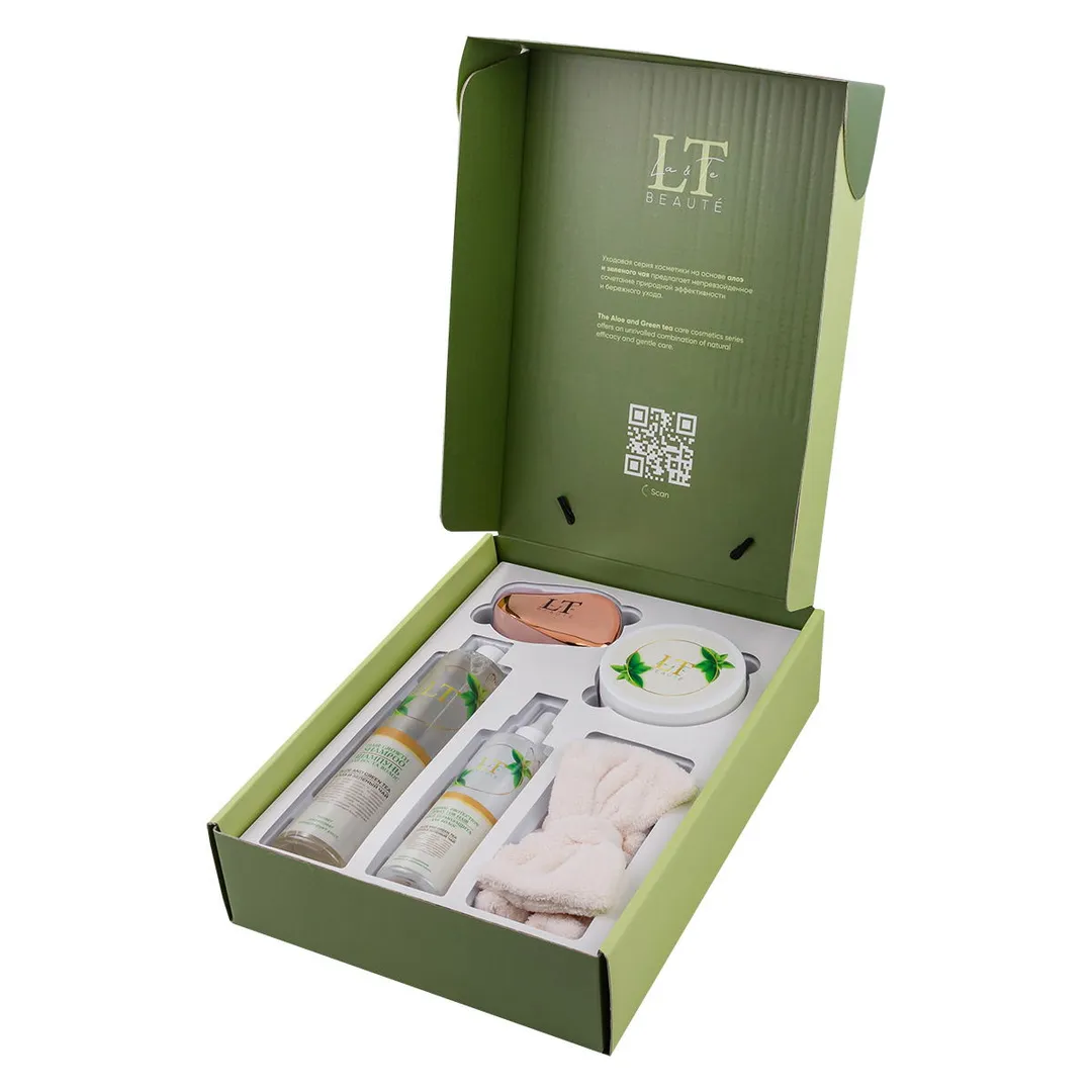 Набор косметики Алоэ и зеленый чай, 5 пр, гель, крем для рук, крем для ног, крем для тела, щетка массажная LT-MB La and Te beaute LT-GR10