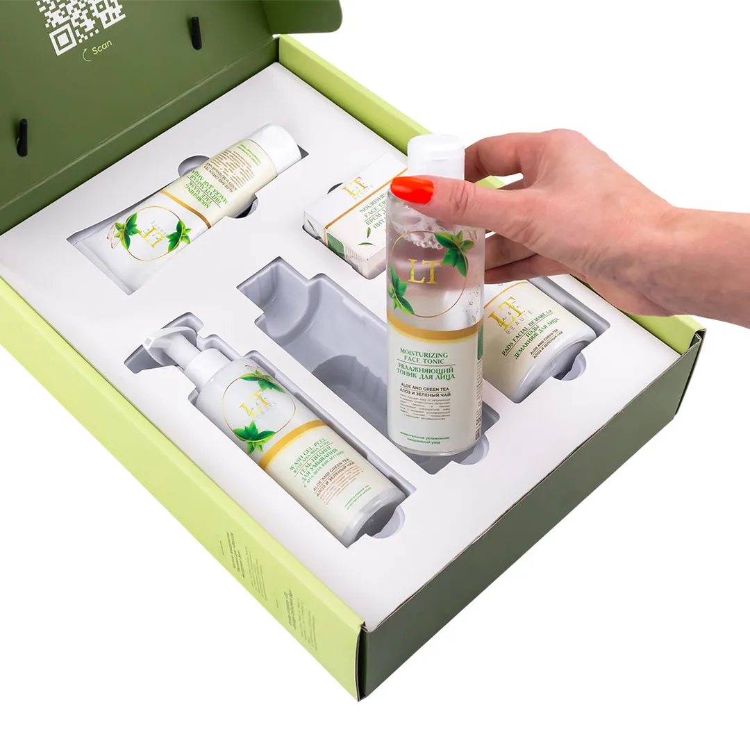 Набор косметики Алоэ и зеленый чай, 5 пр, маска для лица 2159, пэды 2258, крем 2142, гель-пилинг 2241, тоник 2180 La and Te beaute LT-GR8