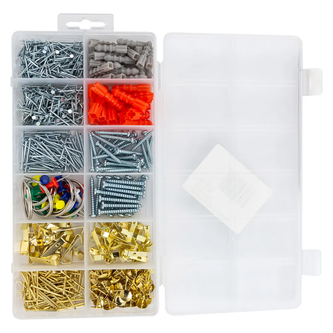 Набор крепежа 700 пр., гвозди в комплекте с винтами, пластм.дюбелями, кнопками и хомутами ISMA ISMA-515817