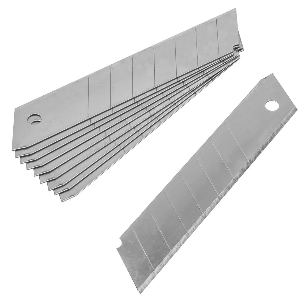 Лезвия сменные для канцелярских ножей 18 мм, сегментированные, в упаковке 25 штук. Используются для резки бумаги, распечатывания корреспонденции и посылок. Лезвия изготовлены из высококачественной углеродистой стали и имеют специальную форму для легкого и точного разрезания. В комплекте 25 сегментированных лезвий, обеспечивающих длительную и эффективную работу. Ширина лезвия 18 мм, толщина лезвия 0,38 мм.Преимущества работы с нами