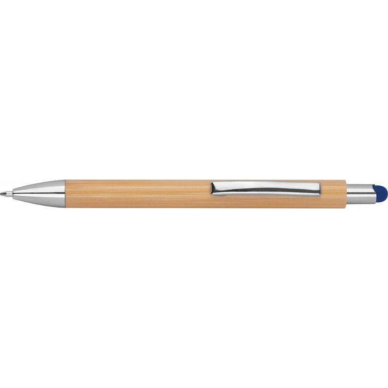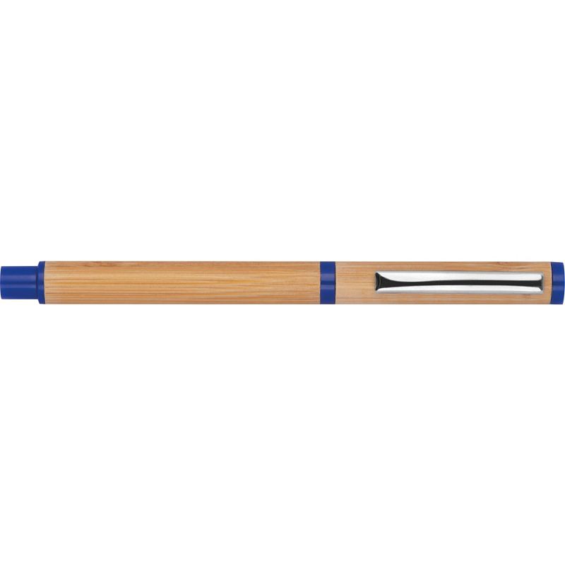 Набор "Macma 1255804": ручка шариковая автоматическая и роллер, бамбук, синий, светло-коричневый
