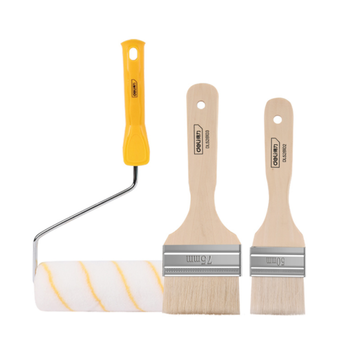В комплект входят кисти из акрилового волокна, цилиндрическая кисть для внутренних работ по стенам и шерстяная кисть.