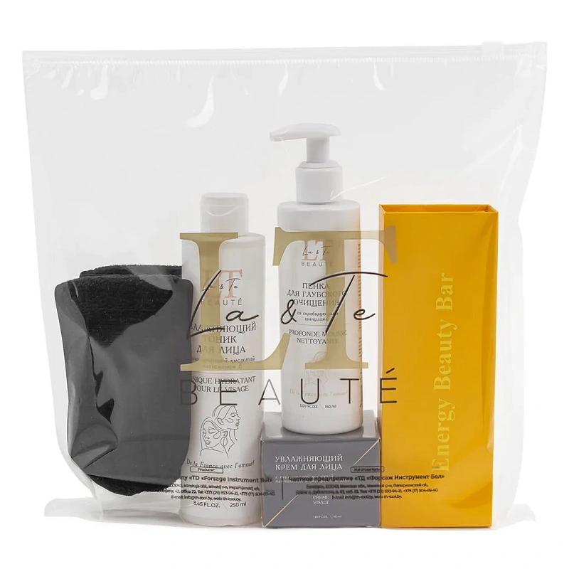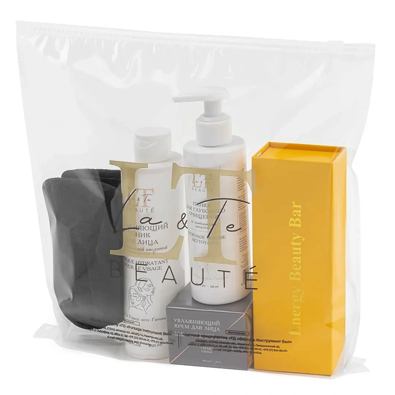 Набор, массажер для кожи вокруг глаз, повязка на голову на липучке, гель-пенка-1824, увлажняющий тоник-1763, крем для лица-1862 La and Te beaute LT-31