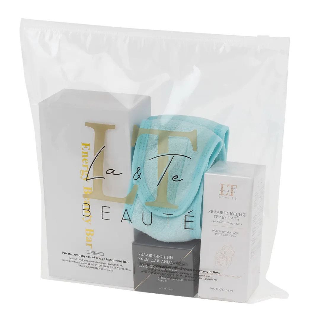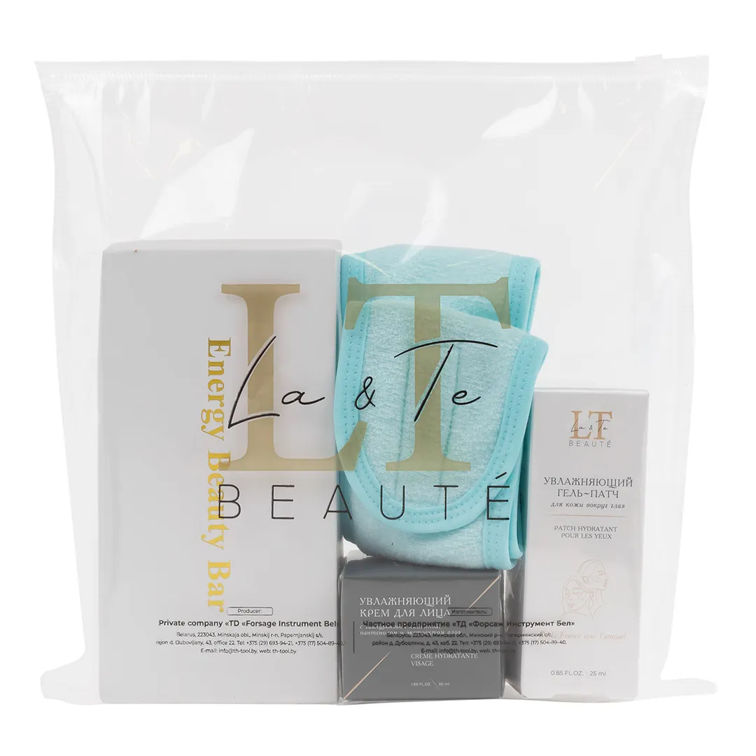 Набор, массажер роликовый Gold, повязка на голову на липучке, гель-патч для лица-1831, крем для лица-1862 La and Te beaute LT-30