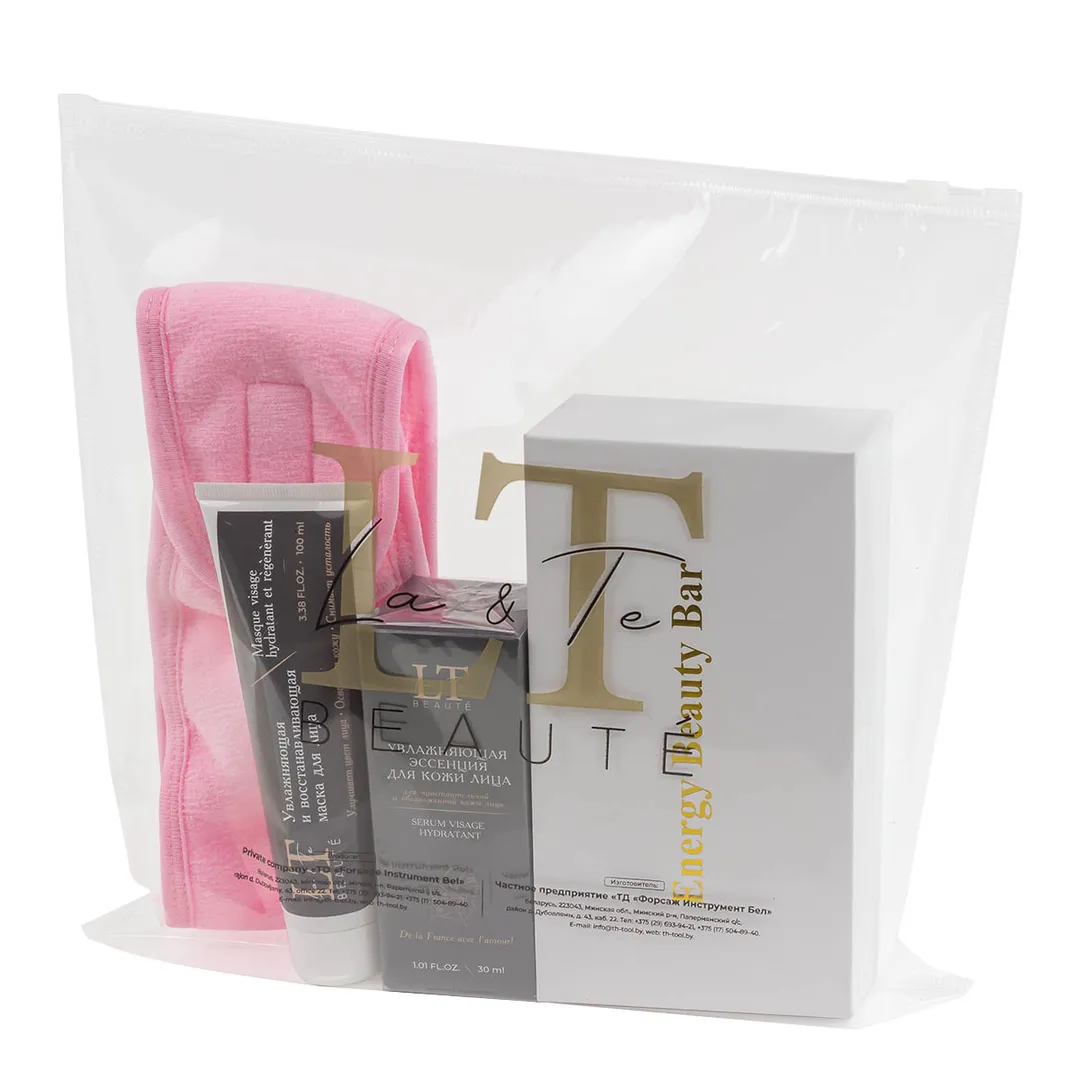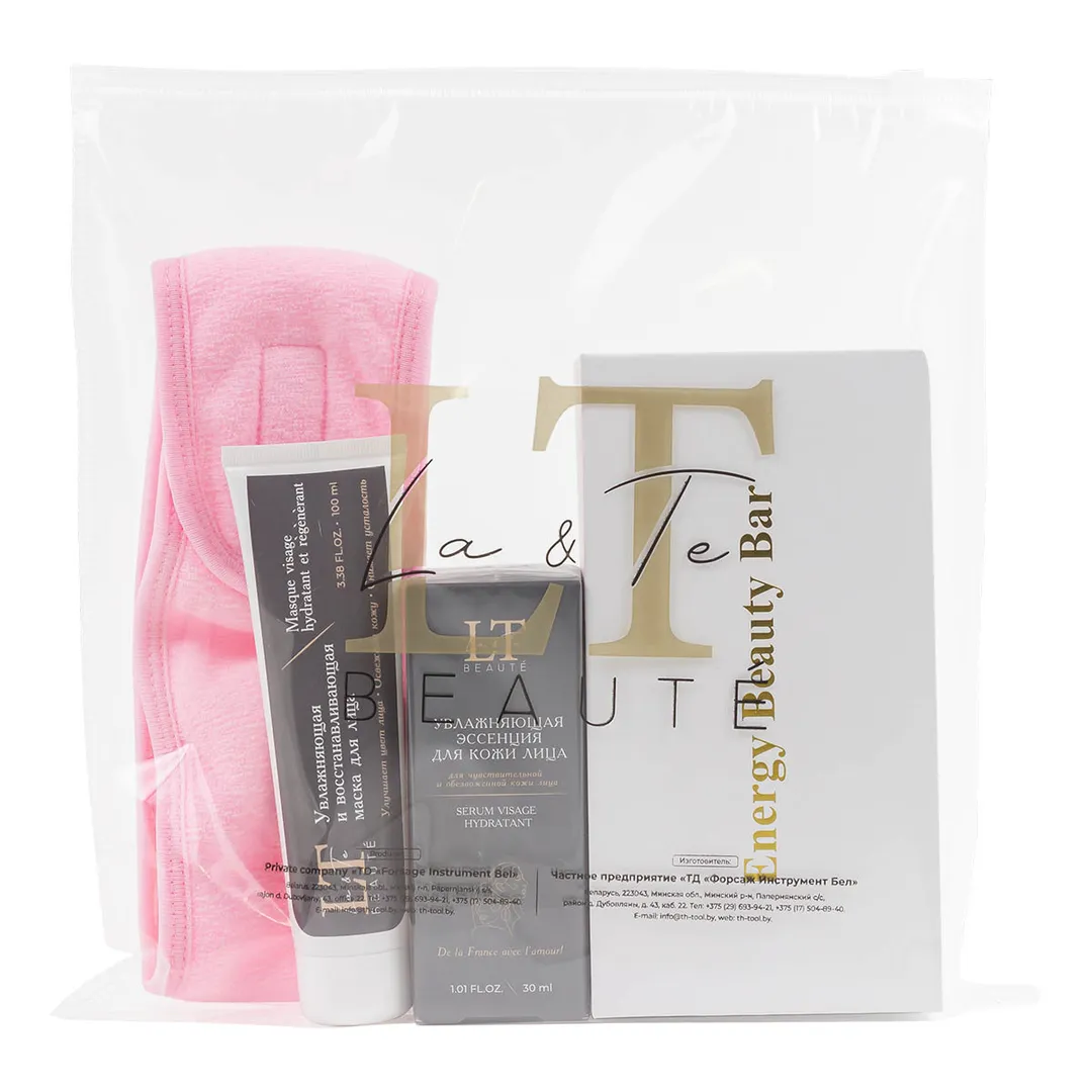 Набор, массажер роликовый Gold, повязка на голову на липучке, маска для лица 1886, эссенция для лица 1848 La and Te beaute LT-29