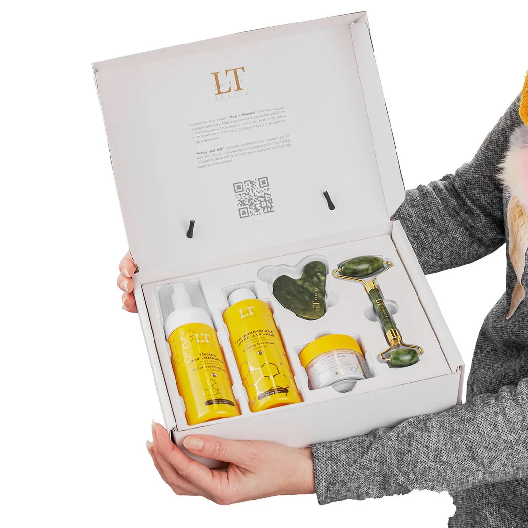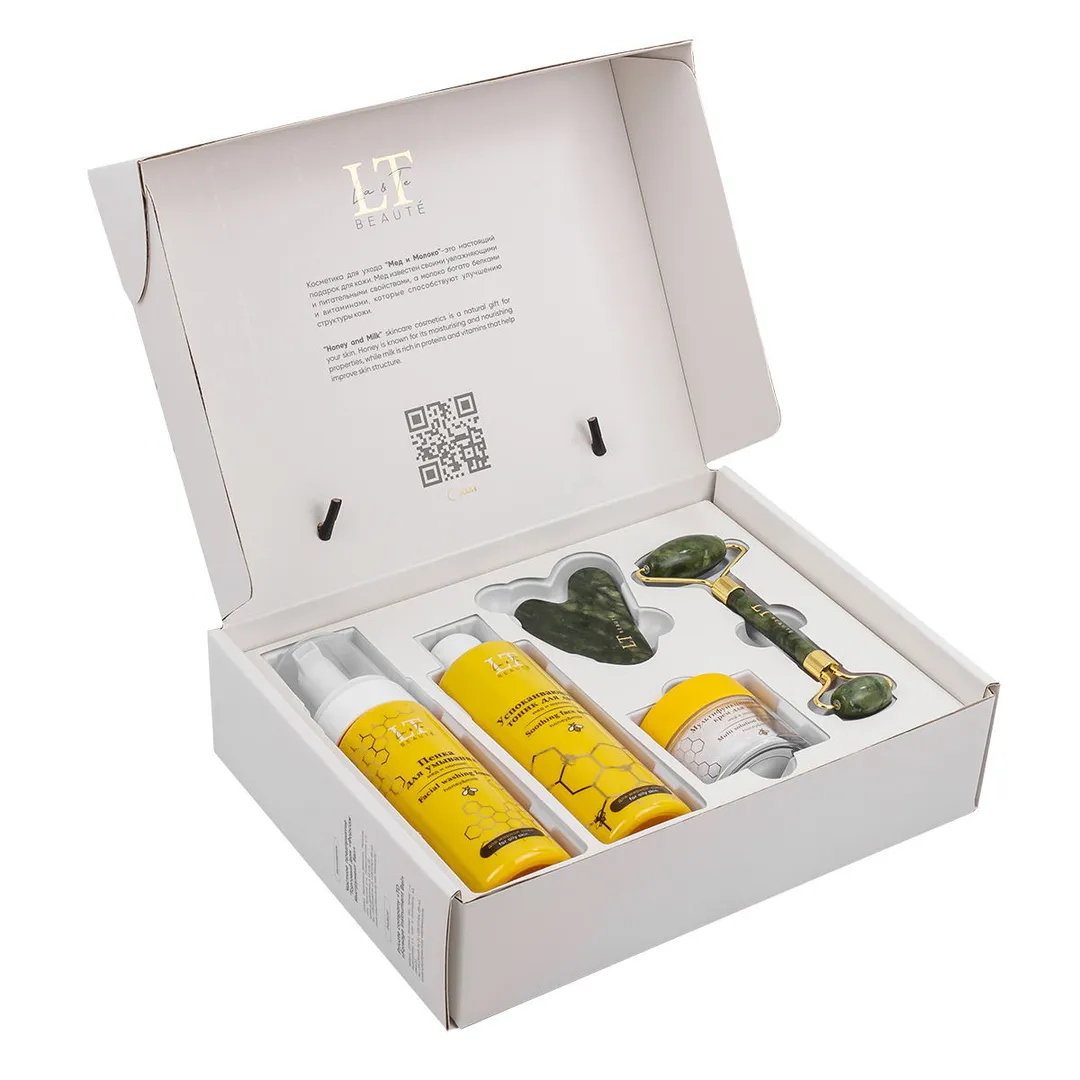 Набор Мед и молоко для жирной кожи лица, тоник LT-1213, крем-LT1237, пенка-LT-1275, скребок гуаша, массажный ролик зеленый La and Te beaute LT-Hm2