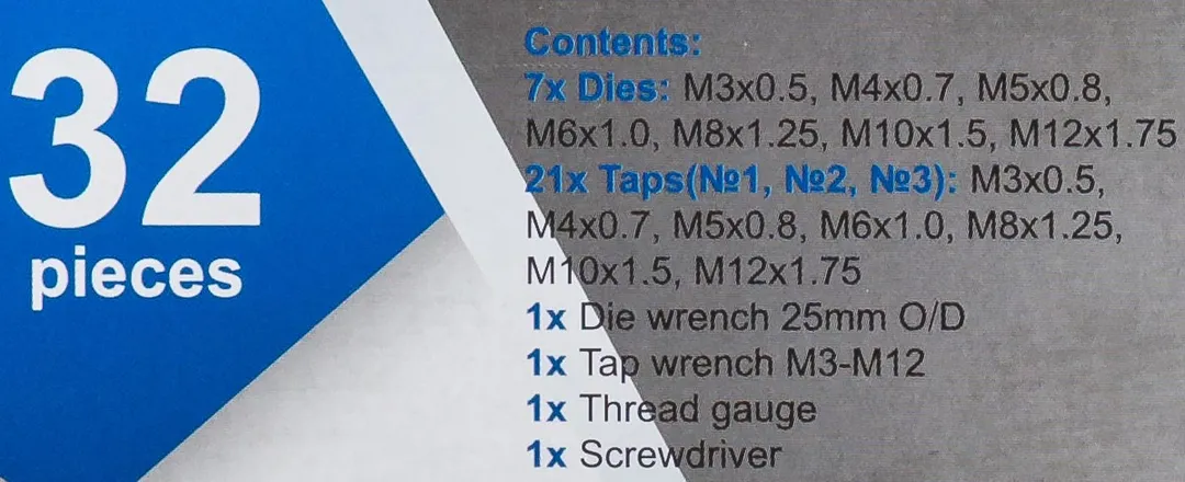 Набор метчиков и плашек 32 пр М3х0.5, М4х0.7, М5х0.8, М6х1, М8х1.25, М10х1.5, М12х1.75 JBC JBC-M032-1