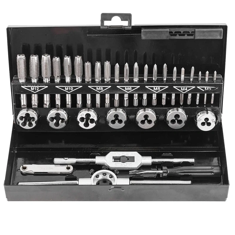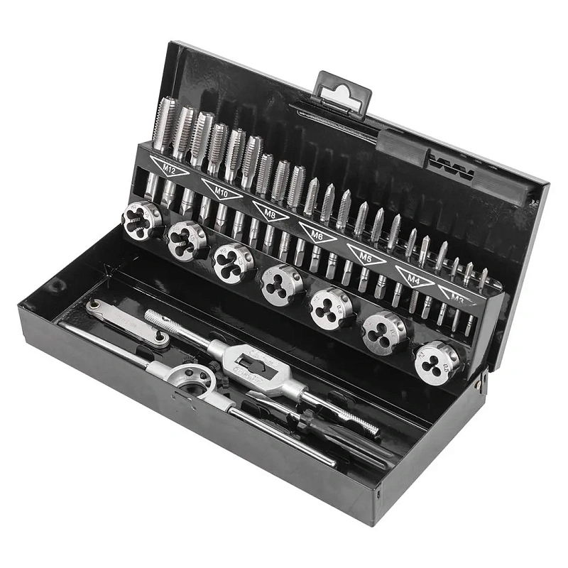 Набор метчиков и плашек 32 пр М3х0.5, М4х0.7, М5х0.8, М6х1, М8х1.25, М10х1.5, М12х1.75 RockForce RF-M032-1