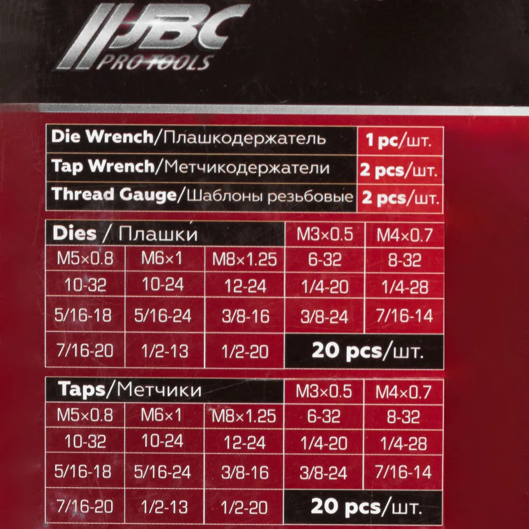 Набор метчиков и плашек 50 пр, JBC JBC-M050-3