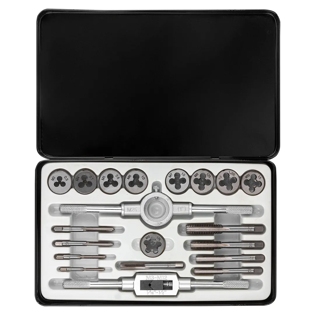 Набор метчиков и плашек метрический 20 пр М3х0.5, М4х0.7, М5х0.8, М6х1, М7х1, М8х1.25, М10х1.5, М12х1.75, 1/8NPT27 JBC JBC-M020-1