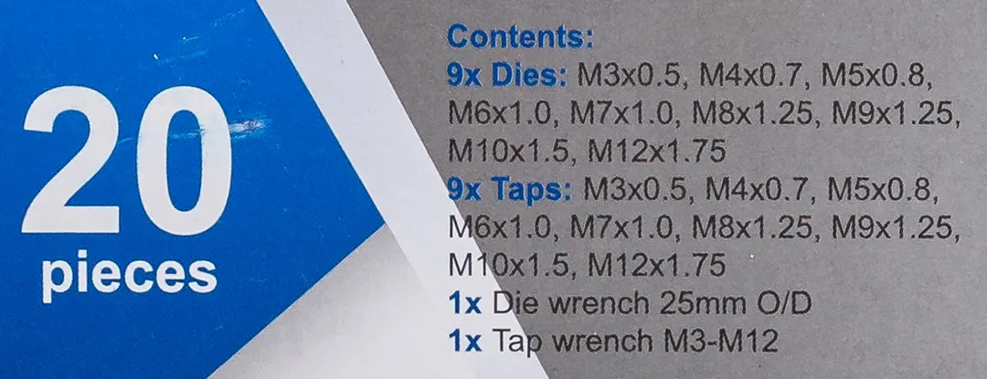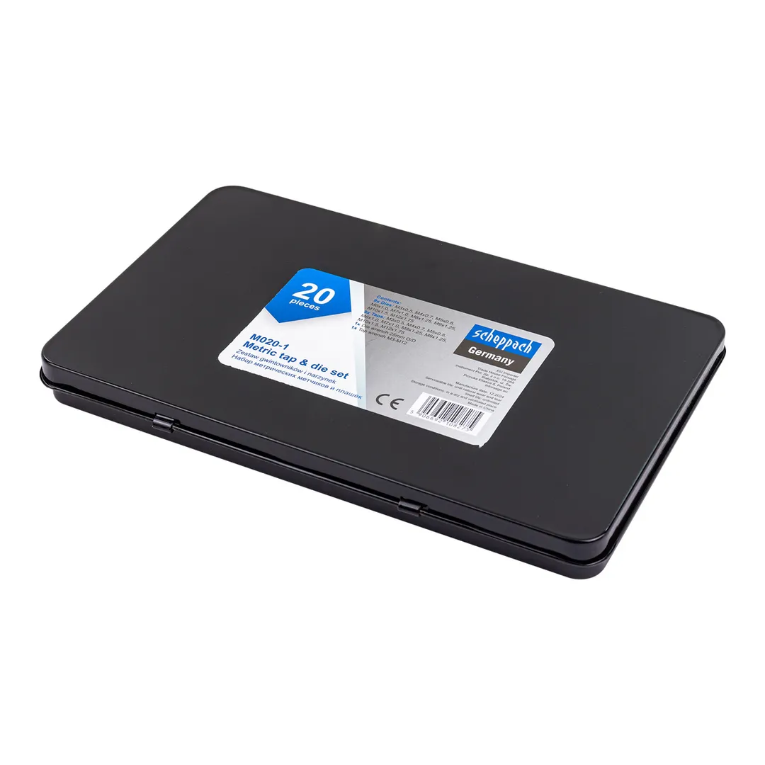Набор метчиков и плашек метрический 20 пр М3х0.5, М4х0.7, М5х0.8, М6х1, М7х1, М8х1.25, М9х1.25, М10х1.5, М12х1.75 Scheppach Sch-M020-1
