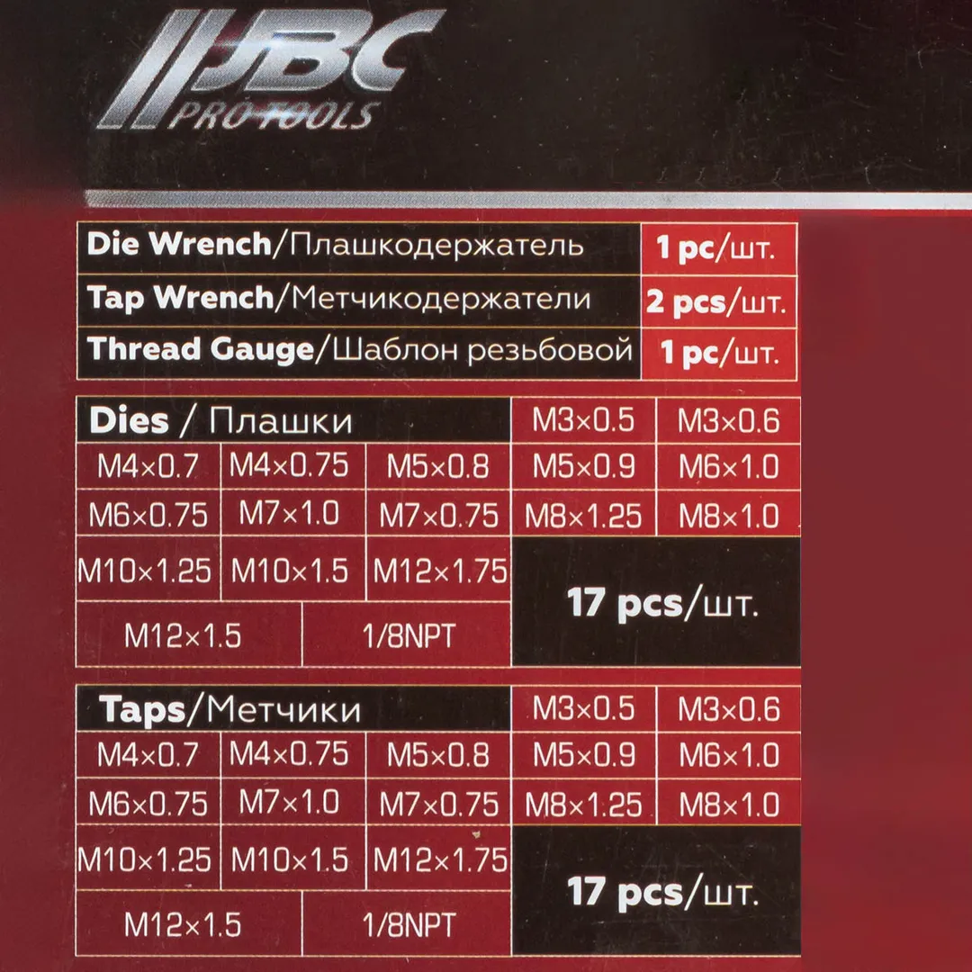 Набор метчиков и плашек метрический 40 пр, JBC JBC-M040-1