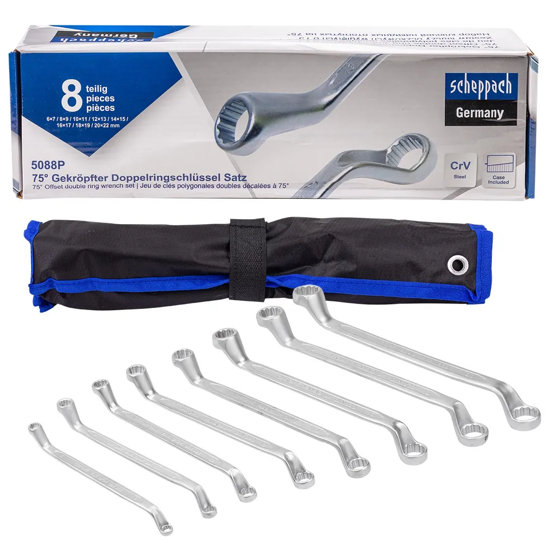 Набор накидных ключей, отогнутых на 75°, 6х7-20х22 мм 8 пр Scheppach Sch-5088P