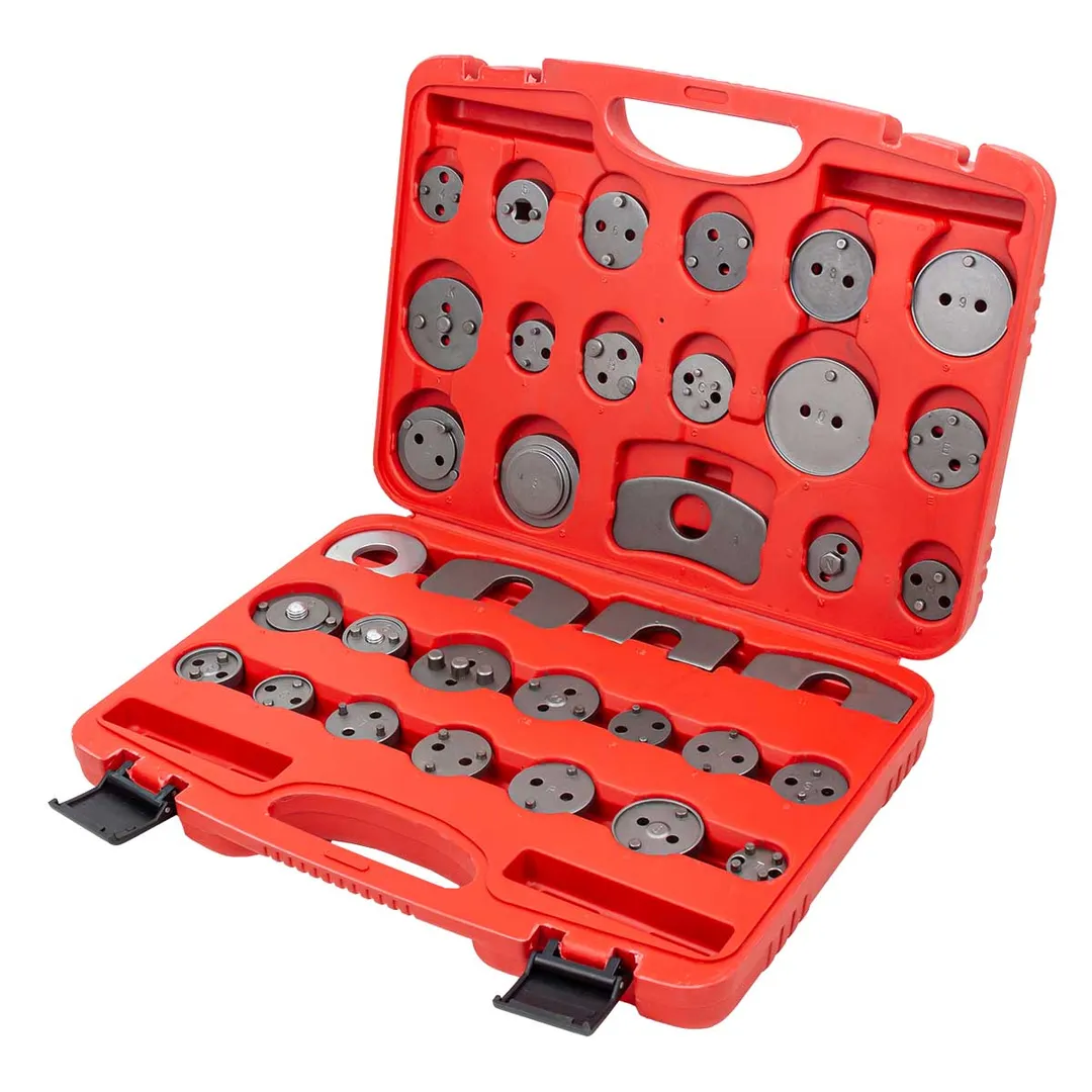 Набор насадок для обслуживания тормозных цилиндров 35 предметов в кейсе выполнен из высококачественной стали, что даст возможность пользоваться ими многие годы. предназначен для обслуживания тормозной системы. Используется в полноприводных автомобилях, микроавтобусах и легковых транспортных средствах. Насадки позволяют корректно утапливать поршни тормозных цилиндров. Основные преимущества набора: детали из прочного металла рассчитаны на длительный период эксплуатации; насадки с различным диаметром подходят для большинства автомобилей известных марок. Для комфортной транспортировки комплект поставляется в пластиковом кейсе с ручкой. Инструменты хранятся в специальном ложементе, что исключает риск утери после проведения работ.Преимущества работы с нами