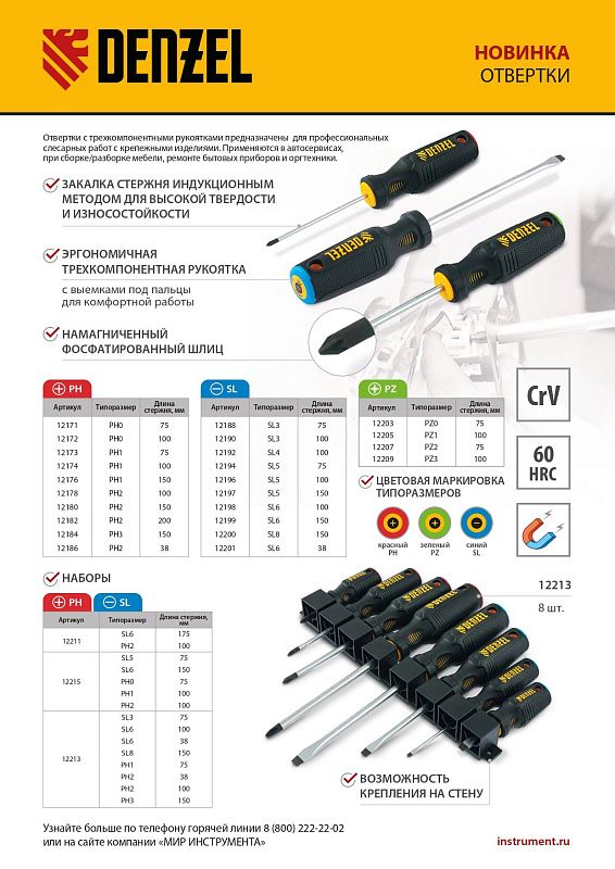 - Продуманная маркировка — цветное кольцо на затыльнике соответствует типоразмеру отвертки, что облегчает поиск нужного инструмента.