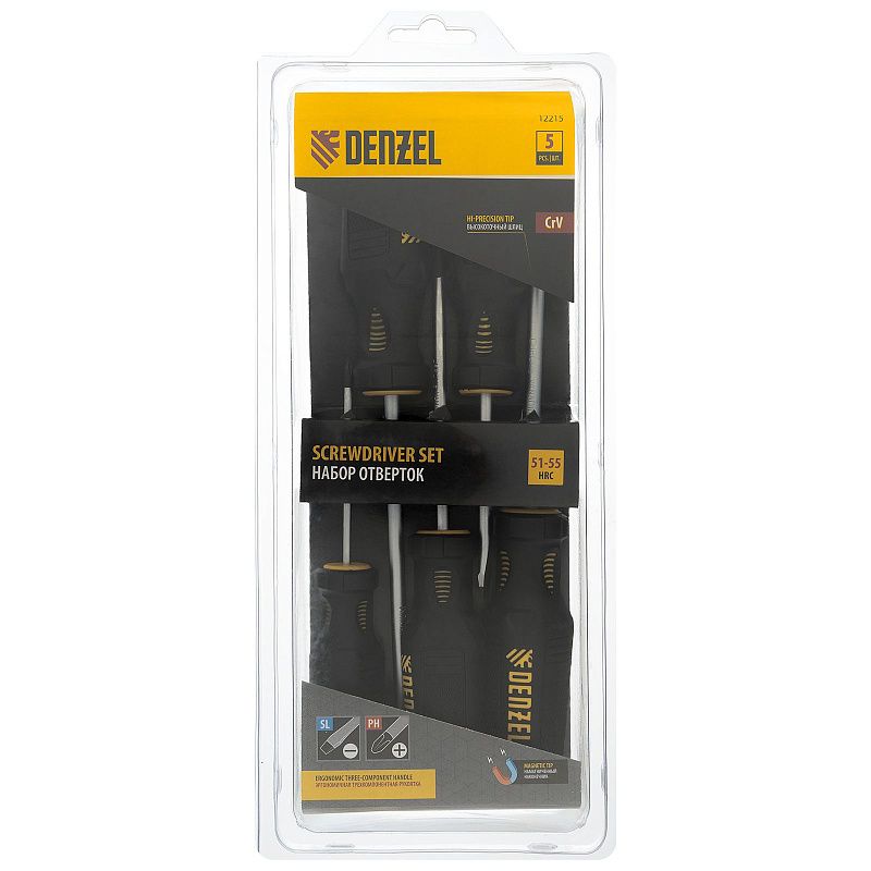 Набор отверток, 5 пр., CrV, трехкомпонентная рукоятка Denzel 12215