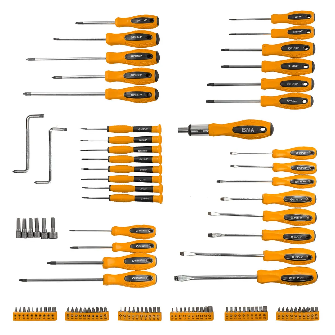 Набор отверток и бит 100 предметов - это универсальный набор инструментов для работы с крепежами различных типов и размеров. Он включает в себя отвертки с различными типами головок и наконечников, а также биты для работы с шурупами, винтами и другими крепежными элементами. Стержни отверткок изготовлены из высококачественной стали, которая обеспечивает высокую прочность и устойчивость к износу. Отвертки оснащены мощным магнитным наконечником, который позволяет легко и быстро находить и удерживать крепеж. Ручки отверток имеют удобную эргономичную форму, которая обеспечивает комфортное использование и не утомляет руку при длительном использовании. Комплектиция: 1шт. Отвертка-битодержатель реверсивная 1/4"; 23шт. Отвертки: Шлицевые: SL1/8x3", SL5/32x4", SL3/16x3", SL3/16x4", SL1/4x4", SL1/4x6", SL5/16x"; Крестовые: PH0x3", PH1x3", PH1x4", PH1x6", PH2x4", PH2x6"; Torx: T8x3", T10x3", T15x3", T20x3",T25x4", T30x4"; Square: S0x3", S1x3", S2x4", S3x6"; 6шт. Бита-насадка отверточная 6гр: 6-7-8-9-10-12мм; 2шт. Ключи-отвертки Z-образные: 5-РН1, 6-РН2; 8шт. Отвертки ювелирные: Шлицевые: SL3/32x2", SL1/8x2"; Крестовые: PH00x2", PH0x2"; Torx: T6x2", T7x2", T8x2", T10x2"; 60шт. Биты 1"CR-V: PH0, PH1, PH2, PH3, PZ0, PZ1, PZ2, PZ3, T6, T8, T10, T15, T20, T25, T27, T30, T35, T40, S0, S1, S2, S3, H2, H2.5, H3, H4, H5, H6, H1/16, H3/32, H7/64, H1/8, H9/64, H5/32, H3/16, H7/32, H1/4, H5/16, SL1/8, SL9/64, SL5/32, SL11/64, SL3/16, SL7/32, SL1/4, SL17/64, SL9/32, SL5/16.