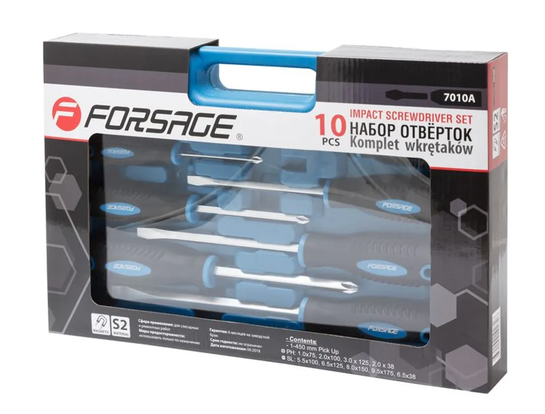 Набор отверток магнитных ''Profi'' 10 пр. Forsage F-7010A, описание и характеристики: