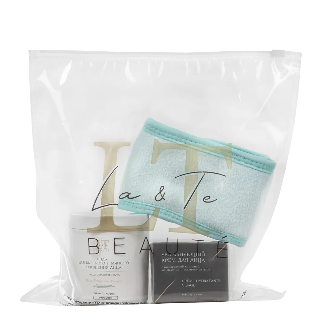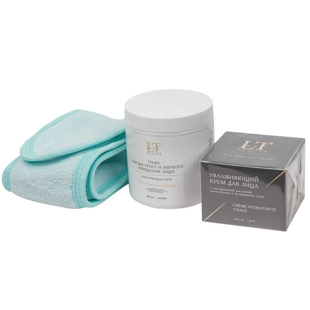 Набор, ПЭДЫ, 60 шт LT-1909, увлажняющий крем для лица 50 мл LT-1862, повязка на голову на липучке, бирюзовая La and Te beaute LT-38