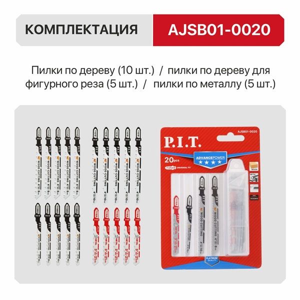 Набор пилок для лобзиков ADVANCE 20 шт, дерево/металл/фигурный рез, блистер PIT AJSB01-0020