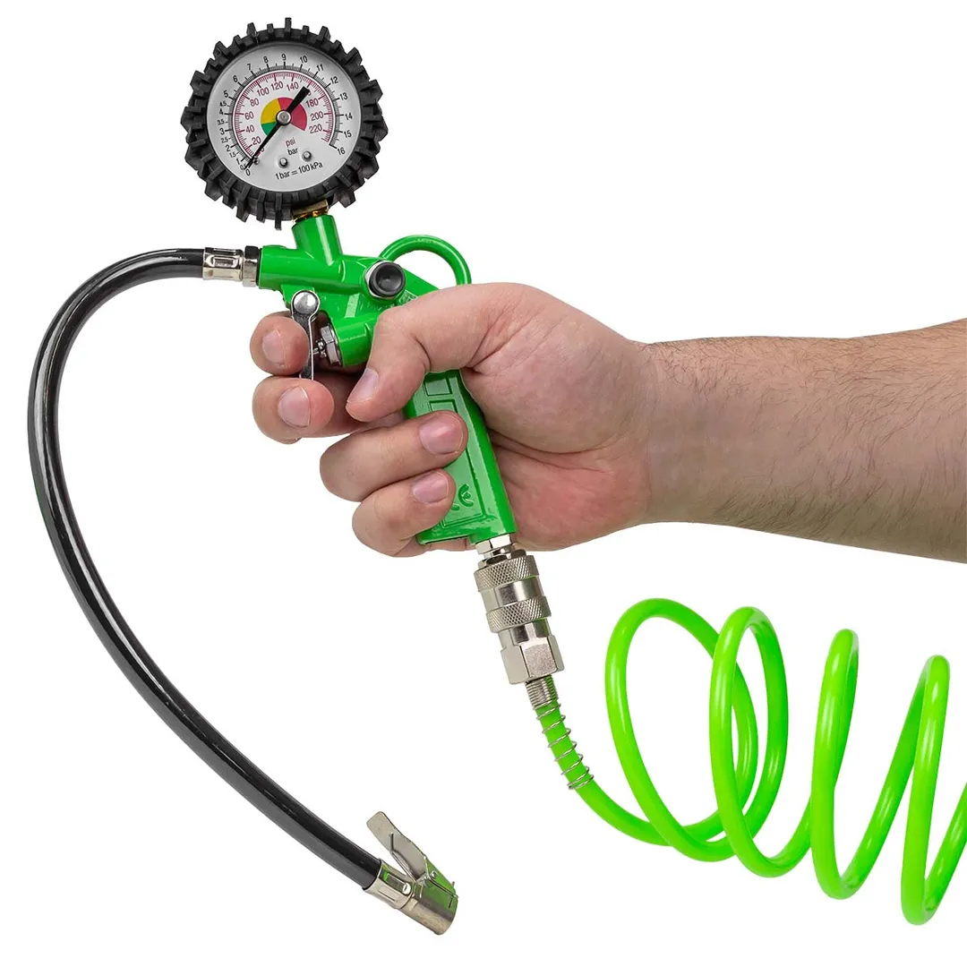 Набор пневмоинструмента предназначен для покрытия различных поверхностей краской и иными субстанциями, преобразованными в мелкодисперсную воздушную смесь под действием высокого давления. Набор включает в себя 5 предметов: Краскопульт-сопло 1.5 мм, верхний пластиковый бачок 600мл; Пистолет для подкачки шин с манометром 0-12бар; Пистолет продувочный; Пневмопистолет для мойки двигателя с бачком 900мл; Витой шланг 5мПреимущества работы с нами