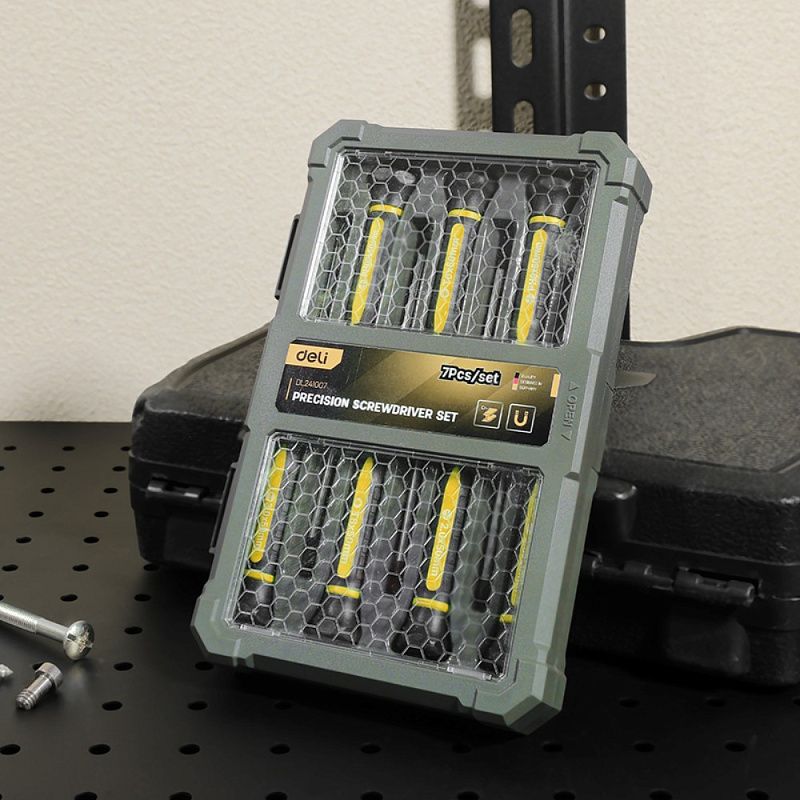 Набор прецизионных отверток Deli YS EDL241007 SL,PH, Torx, 7шт, кейс, черный, желтый