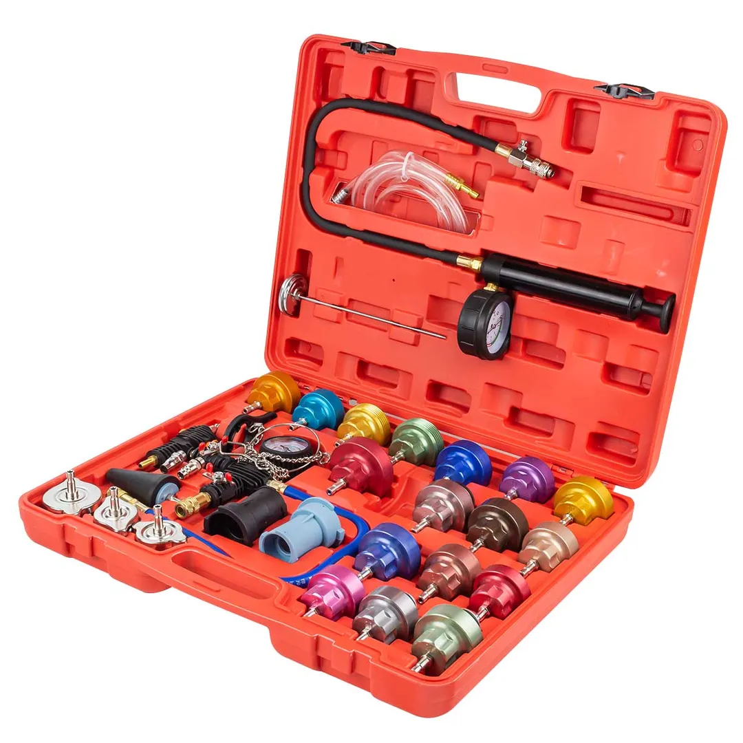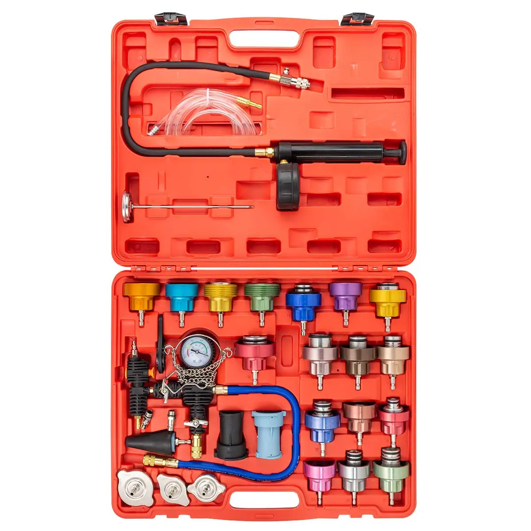 Набор приспособлений для тестирования систем охлаждения 18 предметов (0-2.5 bar) . Комплектация: Адаптер для Buick, Chevrolet, Chrysler, Dodge, Jeep, Mercedes-Benz, Oldsmobile, Pontiac (BGS 8027-3); Адаптер для Ford, Honda, Hyundai, Lexus, Mazda, Mercedes-Benz, Mitsubishi, Nissan, Peugeot, Subaru, Suzuki, Toyota (BGS 8027-4); Адаптер для Acura, Chevrolet, Dodge, Eagle, Honda, Isuzu, Lexus, Mercedes-Benz, Mitsubishi, Suzuki, Toyota (BGS 8027-5); Адаптер для Daewoo, Ford, Jaguar, Jeep, Land Rover, Mercedes-Benz, Pontiac, Porsche, Saab (BGS 8027-6); Адаптер для Alfa Romeo, Citroën, Fiat, Mini, Peugeot, Renault, Saab (BGS 8027-7); Адаптер для VW (BGS 8027-8); Адаптер для Audi, BMW, Porsche, VW (BGS 8027-9); Адаптер для BMW (BGS 8027-10); Адаптер для Ford Mondeo, Land Rover, Opel, Ssangyong (BGS 8027-12); Адаптер для Крайслер, Мерседес-Бенц (BGS 8027-13); Адаптер для Форд, Мазда (BGS 8027-15); Адаптер для Audi, VW (BGS 8027-11); Адаптер для Ford (BGS 8027-14); Разъем (BGS8027-30); Разъем (BGS 8027-31); Пластиковый ключ (BGS 8027-32); Термометр (BGS 8027-2); Насос со шлангом (BGS 8027-1).Преимущества работы с нами