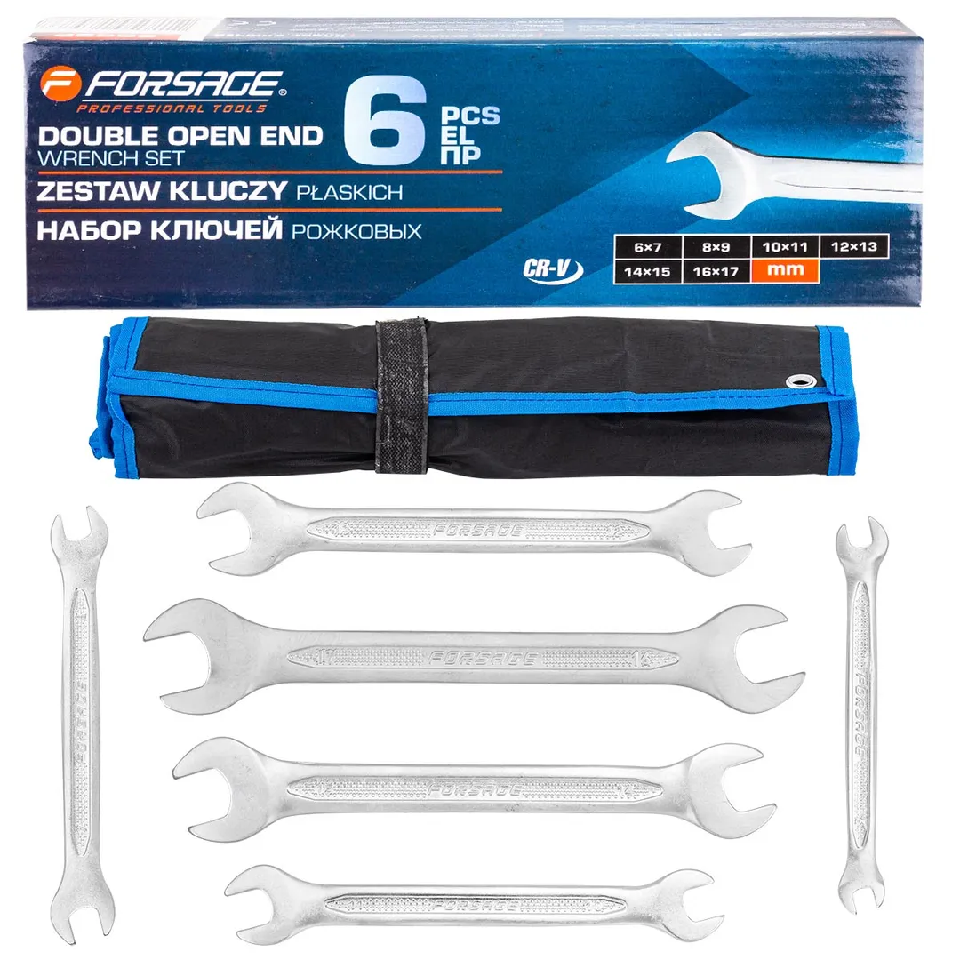 Набор рожковых ключей 6х7-16х17 мм 6 пр Forsage F-5062P