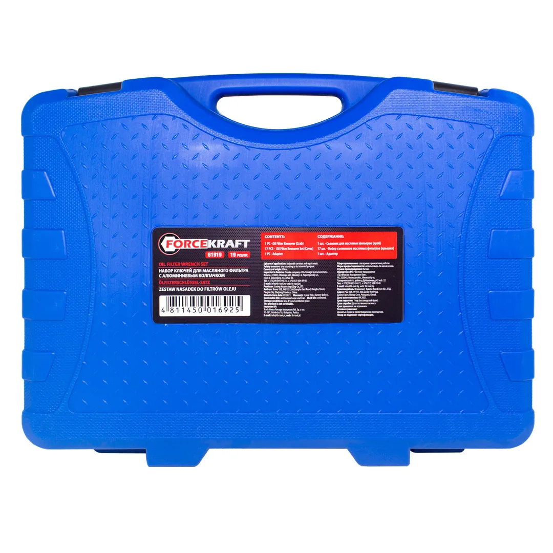 Набор съемников масляных фильтров, 19 пр. (съемник ''краб''-1шт, съемник ''крышка''-17шт) ForceKraft FK-61919, описание и характеристики:
