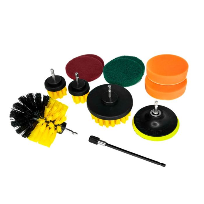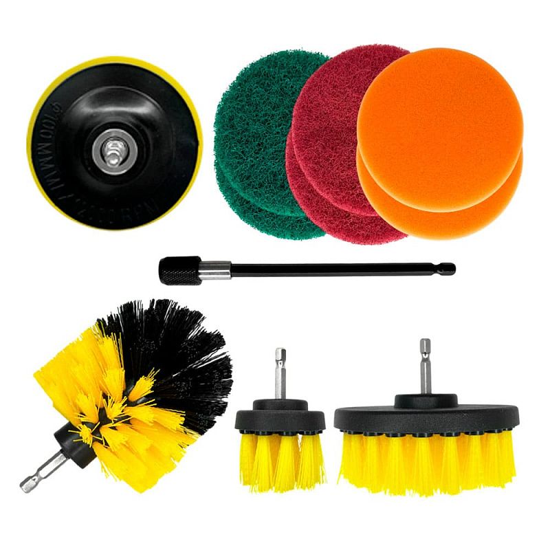 Включают 3 нейлоновые щетки средней жесткости, легко крепятся и эффективно очищают даже труднодоступные места. Материал не повреждает поверхности, подходит для ванной, кухни, ковров, полов, плитки. Показывают высокую эффективность при химчистке авто с профессиональными средствами.