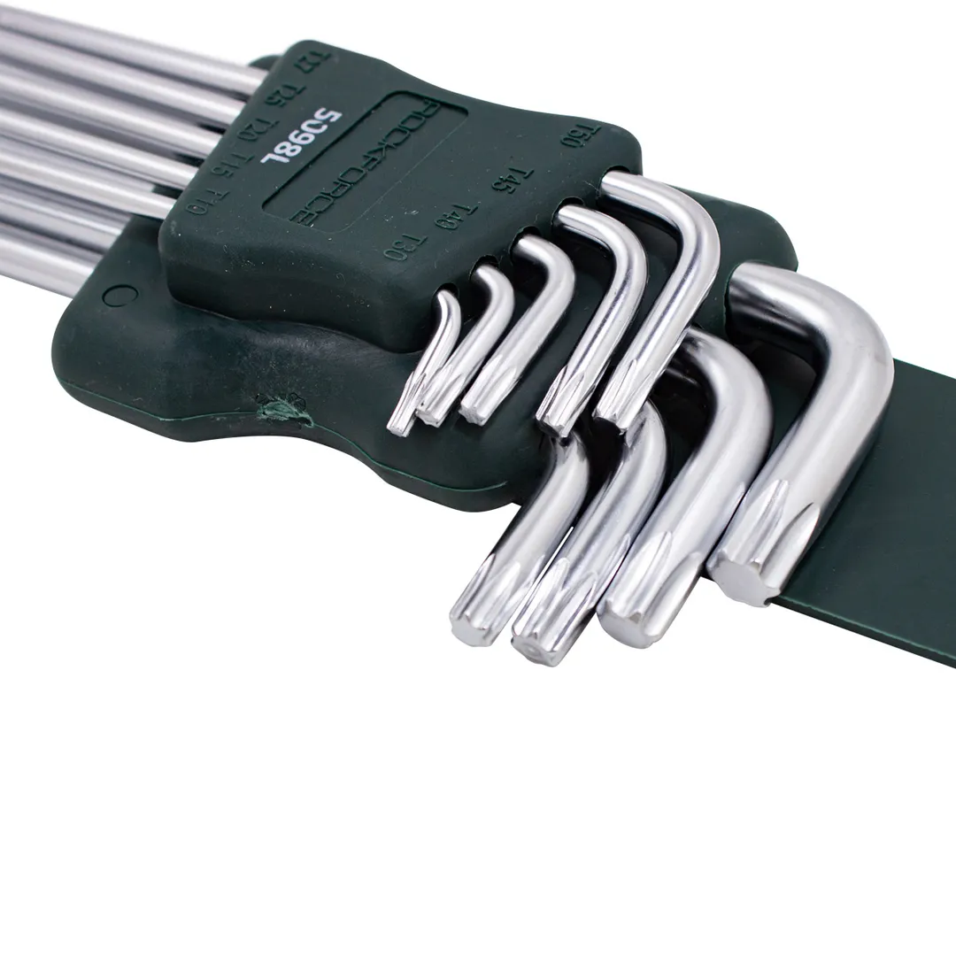 Набор ключей Г-образных Torx длинных - это профессиональный инструмент для закручивания и откручивания деталей с соответствующими отверстиями. Набор Г-образных ключей - это универсальный набор инструментов для слесарно-монтажных работ, содержащий 9 ключей разных размеров. Ключи изготовлены из хромованадиевой стали, отличаются высокой прочностью и устойчивостью к износу. Каждый ключ имеет свой размер и форму, которые позволяют обеспечить надежное крепление и фиксацию крепежа с шестигранным профилем. Набор упакован в пластиковый держатель, который обеспечивает удобство хранения и транспортировки инструментов. Размеры:Т10, Т15, Т20, Т25, Т27, Т30, Т40, Т45, Т50.Преимущества работы с нами