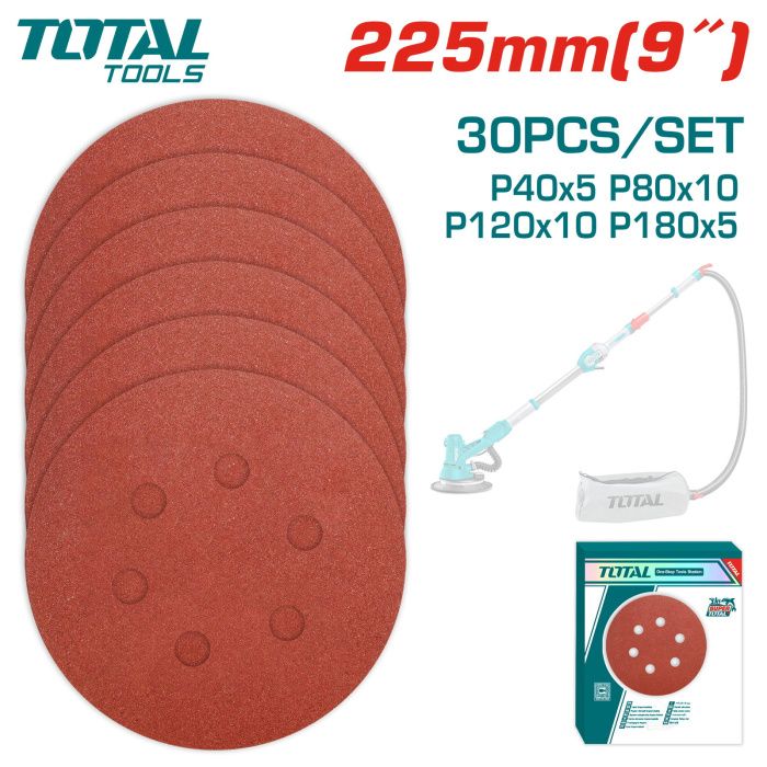 Набор шлифовальных кругов 225 мм TOTAL TAC225030 (30 штук), описание: