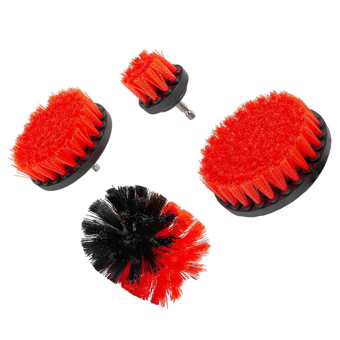 В наборе 4 предмета для чистки под дрель. Насадки крепятся вместо сверла на электрический перфоратор, электродрель или шуруповерт, предусматривается работа на назких оборотах. Щетина выполнена из полипропилена. Возможно использование чистящих средств. Комплектация: Щетка красная закруглённая - 1шт., предназначена для чистки туалетов, унитазов, колёс автомобилей, труднодоступных мест и т.д., длина 90 мм, диаметр 75 мм, толщина щетины 0,35мм; Щётка красная малая - 1шт, предназначена для чистки плинтусов, рам окон, труб, подоконников, труднодоступных мест и т.д, длина 25 мм, диаметр 50 мм, толщина щетины 0,3мм; Щетка красная средняя - 1шт., предназначена для чистки плинтусов, рам окон, труб, душевой кабины, ванной, раковин и т.д., длина 25 мм, диаметр 100 мм, толщина щетины 0,3мм; Щетка красная большая - 1шт., предназначена для чистки душевой кабины, столешниц, стен, плитки, ванной, раковин и т.д., длина 25 мм, диаметр 120 мм, толщина щетины 0,3 мм.Преимущества работы с нами