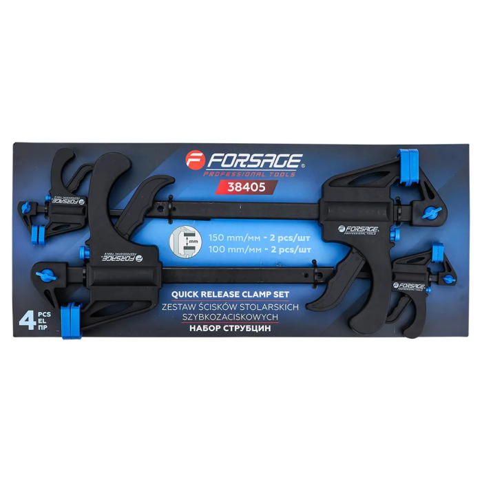 Набор струбцин 100 мм - 2 шт, 150 мм - 2 шт, 4 пр Forsage F-38405