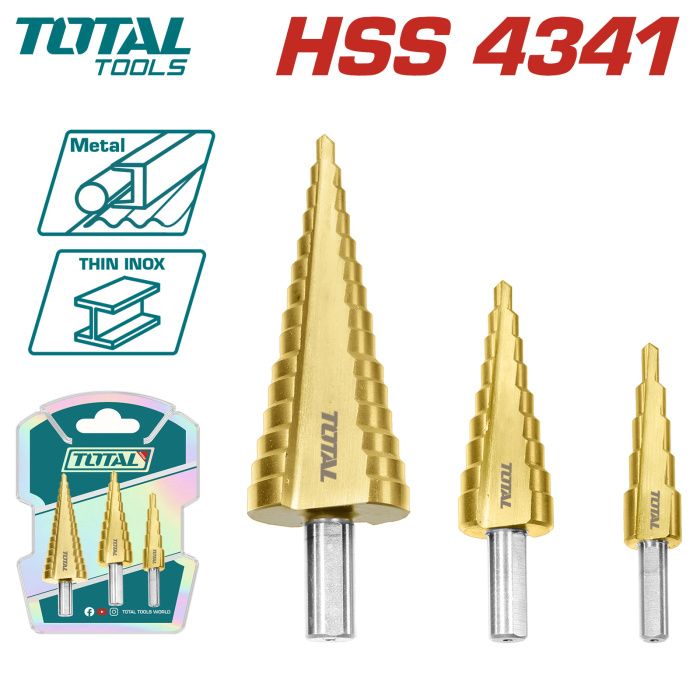 Набор Ступенчатых Сверл 3 шт. TOTAL TAC80401, описание: