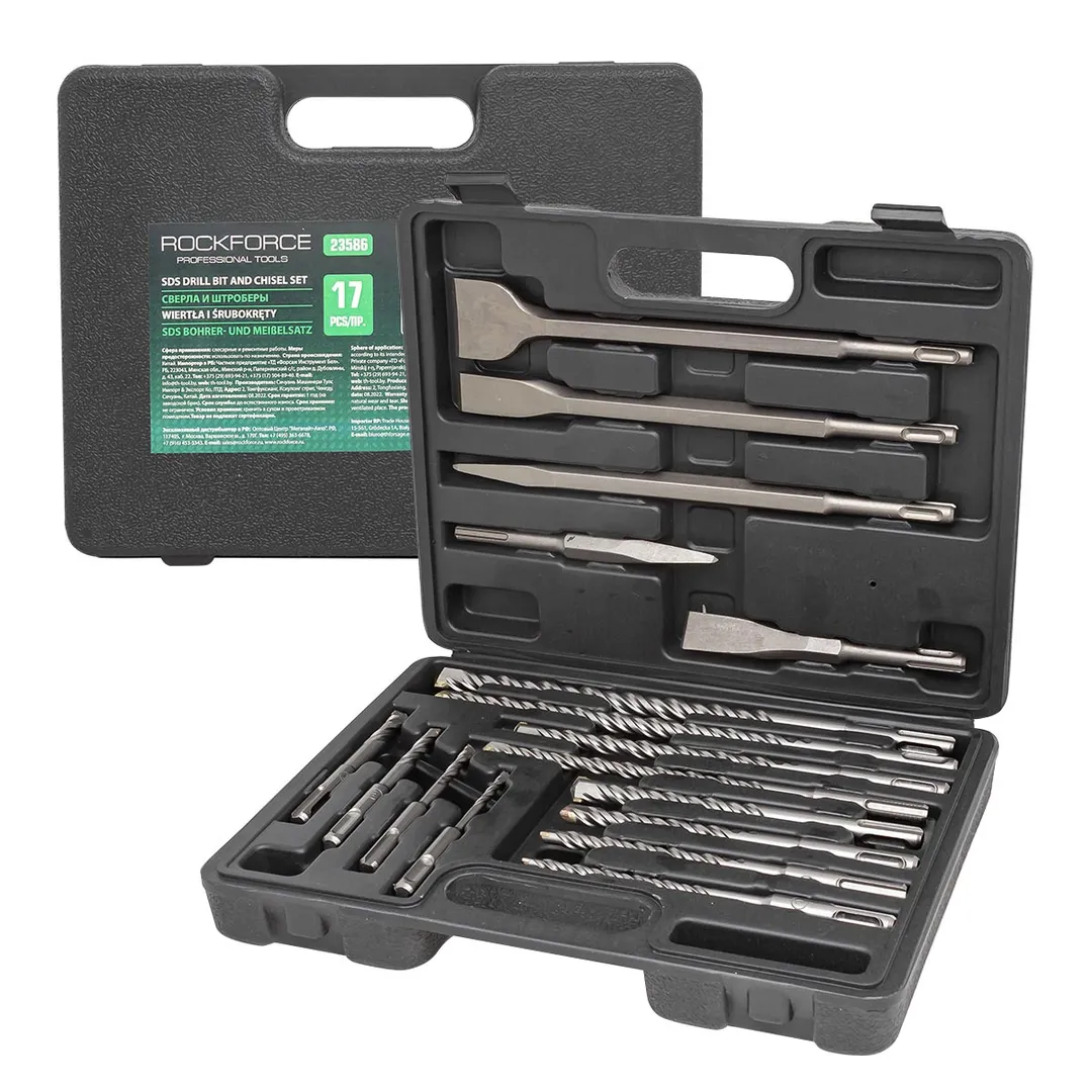 Набор сверл и штроберов 17 пр. 5, 6, 8, 10х110 мм, 6, 8, 10, 12х160 мм, 8, 10х210 мм, 12, 14х260 мм, штроберы: 14х143х20, 14х247х20, 14х247х40 мм RockForce RF-23586