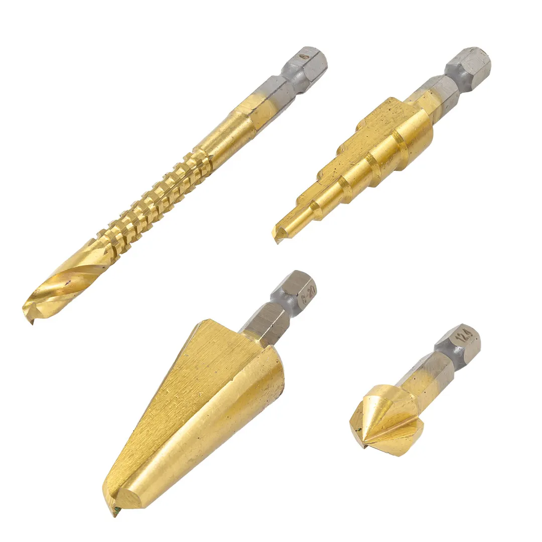 Сверло ступеньчатое:4-12 мм., конусное:8-20 мм., проходное-6 мм., зенкер-12.4 мм., в метал. футляреПреимущества работы с нами