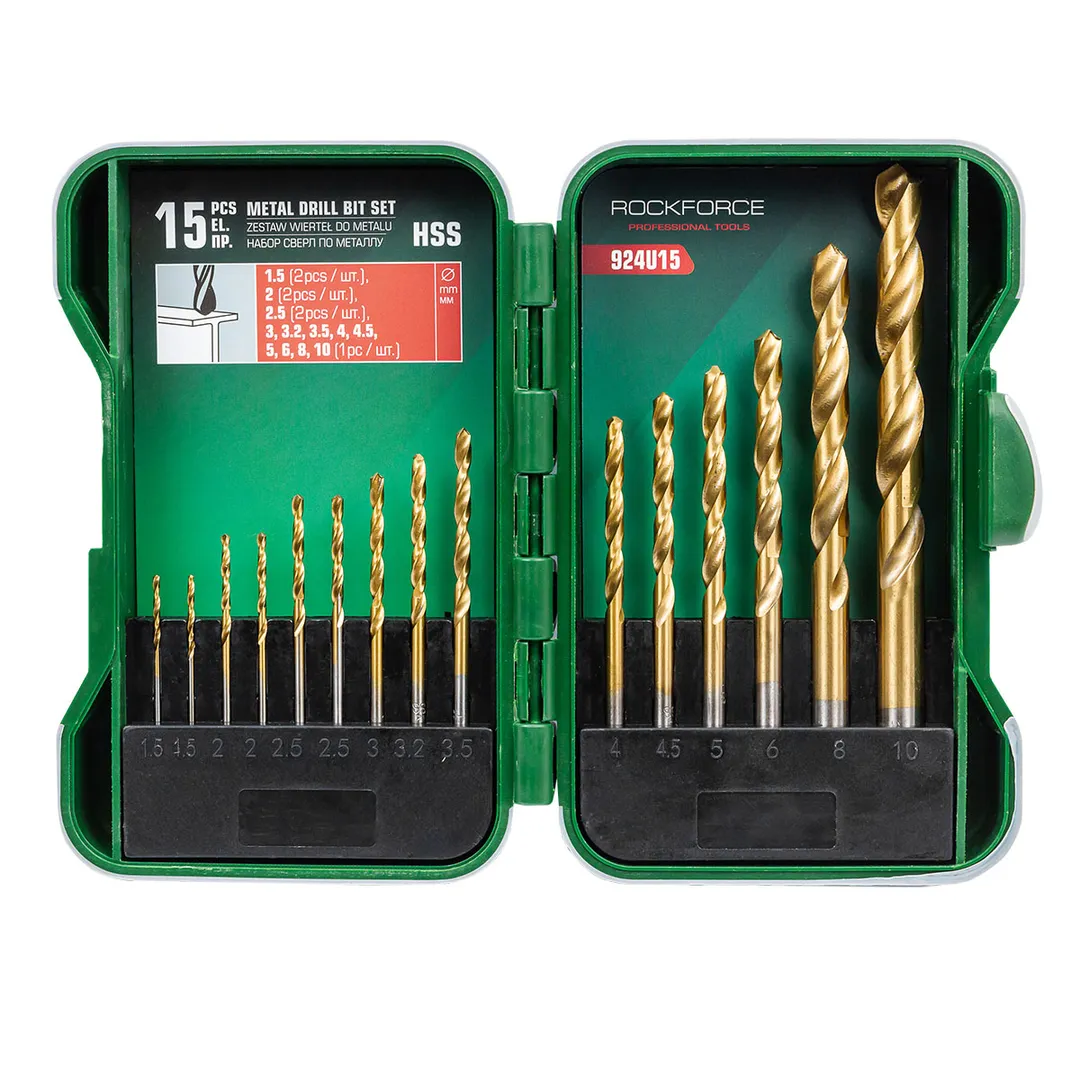 Набор сверл по металлу 1,5-10 мм 15 пр RockForce RF-924U15